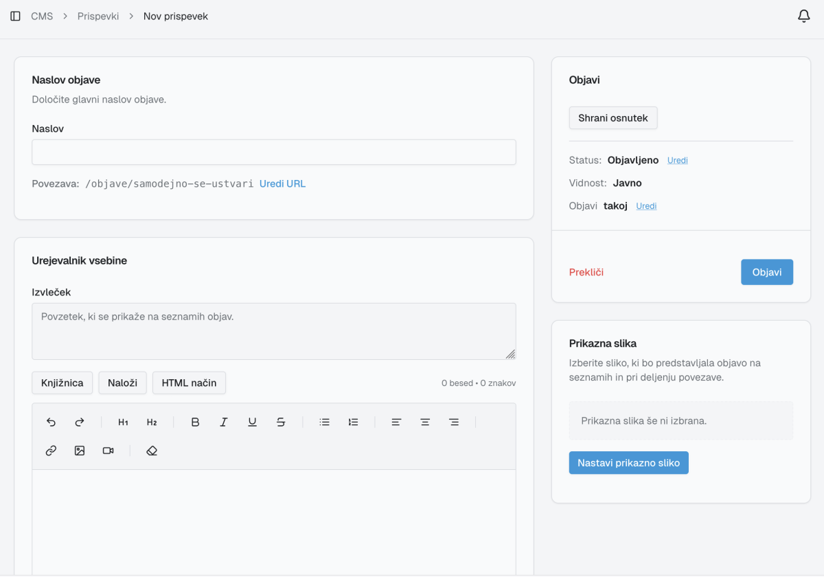 Z njim lahko hitro napišete oznanila, novice ali druge objave. Besedilo lahko preprosto uredite, dodate slike in vse skupaj objavite z enim klikom.